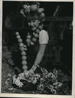 Petite Tove Larson at the 37th Annual Citrus Fair, weard a crown of the citrus fruit, has been selected to rule over the fete