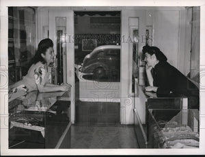 1943 Press Photo LA Calif salesgirls Clarice Leichtman, Belle Behr slow busines
