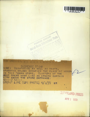 1959 Press Photo Aromatic Salami occupies the place in Roman Store
