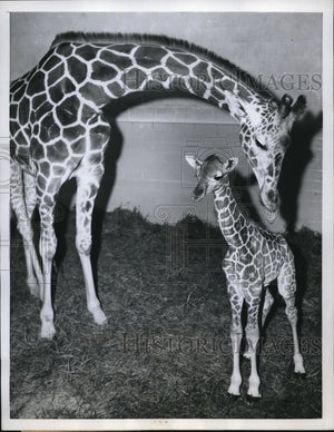 1960 Press Photo Dallas Texas a baby giraffe and its mom at zoo