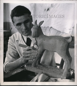 1949 Press Photo Oberammergau Bavaria sculptor Art Schneider at work