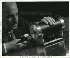 1940 Press Photo Westinghouse Lab,Dr Phillips Thomas magnetized rod rings