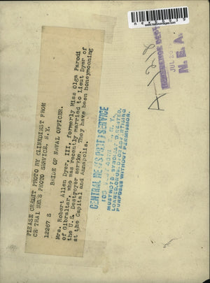 Press Photo Mrs Robert Dyer III marries Lt Dyer of US Destroyer