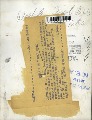 Danville, ILL.: Mrs. Edna Covins,1st midwest woman to received war production board's award for cooperation in scrap collection