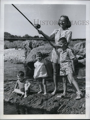 1949 Press Photo Mrs William McCaughey & kids win fishing prize