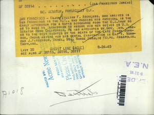 1945 Press Photo San Francisco Maj Wm Knowland nurse R Felps & Capt Patterson