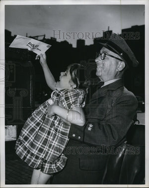 1949 Press Photo Catherine Badway age 5 in NYC & mail carrier Max Rasch