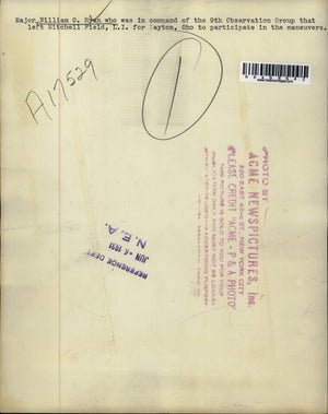 Major Wm.Ryan, commander 9th Observation Group, Mitchell Field L.I. to Dayton Ohio
