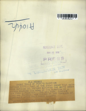 1939 Press Photo Vatican City Rome crowds at St Peter's see white smoke new Pope