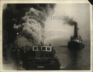 1925 Press Photo San Francisco waterfront firemen pier blaze