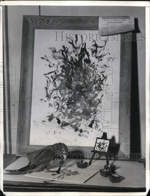 1957 Press Photo Painter bird Rajah Chandra at his LA studios
