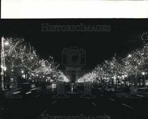 1969 Press Photo Paris' famed Champs Elygees Avenue with Christmas decoration