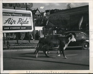 1949 Press Photo Two Hereford Cows Trotting Down Kansas City Streets