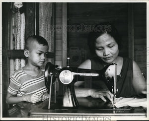 1969 Press Photo Pedro 's wife makes her children's clothes