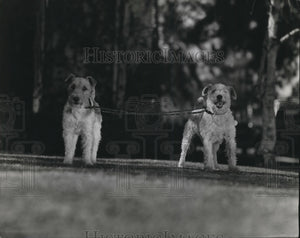1937 Press Photo Edmund Lowe's two dogs age 11 and 1 out for walk