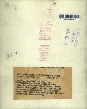 1937 Press Photo Sumida River Ferries At Dock During Strike in Tokyo Japan