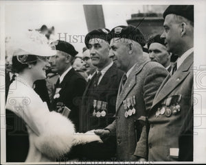 1939 Press Photo Queen Elizabeth of England shakes hand of war veteran