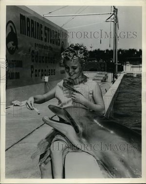 1963 Press Photo Marineland oceanarium in Fla porpoise performing