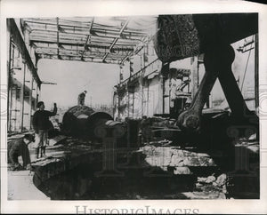 1946 Press Photo Russia Dnieper Dam ass workers move machinery