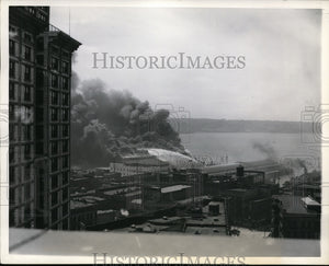 1944 Press Photo Three alarm fire at Luckenback Steamship Company dock