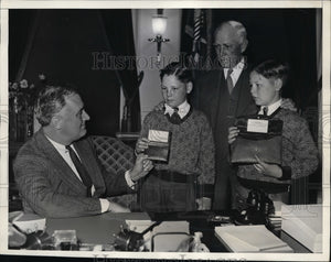 1934 Press Photo Pres Roosevelt, Clark Griffithm sons Jim & Billy in Wash DC