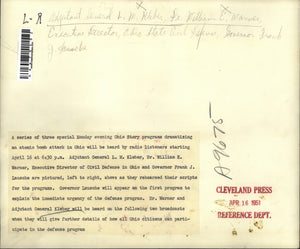 1951 Press Photo General Kleber, Dr Warner & Governor Lausche on Radio Program