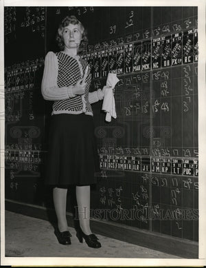 1941 Press Photo San Francisco Jean Wooster marker at brokerage house