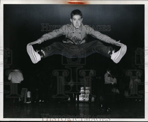 1959 Press Photo Skip Polom at Cathedral Latin cheer contest in Ohio
