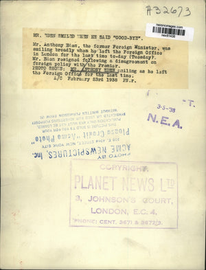 1938 Press Photo Former British Foreign Minister Anthony Eden - nex81438