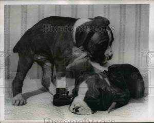 1957 Press Photo Brightin Sussex England boxer pups owned by Valerie Moon