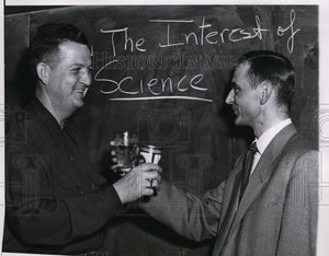1955 Press Photo Chicago Bruce Bergum & Sgt William Harrell drink for science