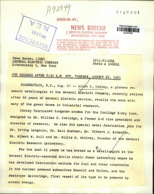 1961 Press Photo Schnectady NY Allen Cooley research metallurgist at GE