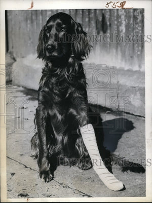1944 Press Photo England A Irish setter with an injured & bandaged leg