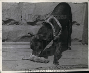 1941 Press Photo Mrs JH Britt;s dog with a dead mouse in Garfield Heights Ohio