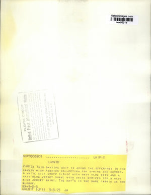 1975 Press Photo Daytime Suit by Lanvin High Fashion Collection Silk Crepe Blous