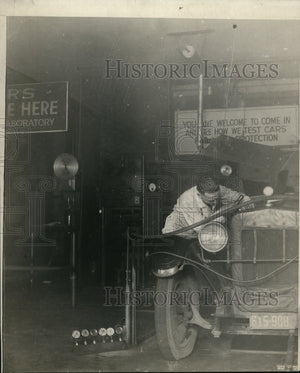 1925 Press Photo Testing Gas Escaping Through Piston Rings Auto Manufacturing