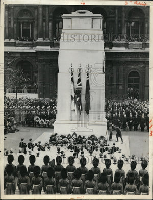 1932 Press Photo King George Places Wreath on Cenotaph at Armistice Ceremony