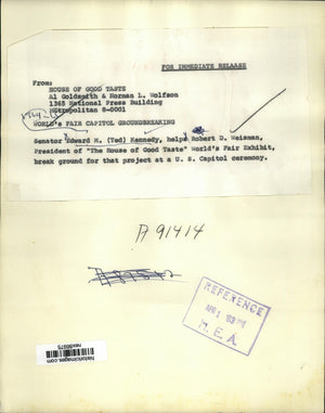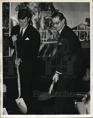 Senator Edward M. (Ted) Kennedy, helps Robert D. Weisman, President of "The House of Good Taste" World's Fair Exhibit, break ground for that project at a United States Capitol ceremony.