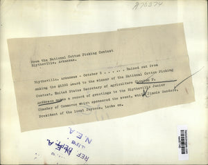 1945 Press Photo Secretary of Agriculture Clinton Anderson Winner Cotton Picking