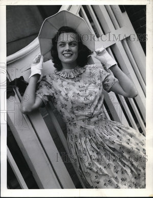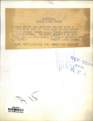 1942 Press Photo Blue Cotton Grape Vine Print Dress Dirndl Skirt by Clarepotter