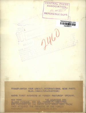 1936 Press Photo Countess Von Blixen Finesche & Mr Thomas Hamilton at Radio City