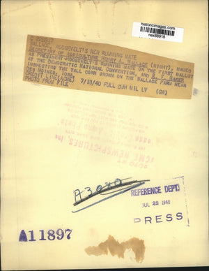 Wallace (right), named as President Roosevelt's running mate on the first ballot at the Democratic National Convention, and R.F. Baker are shown inspecting the tall corn grown on the Wallace farm near Des Moines, Iowa.