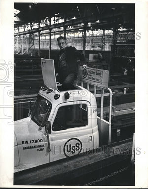 1962 Press Photo Truck Driver Ed Harrold Comes Out Door On Top Of Cab of Truck