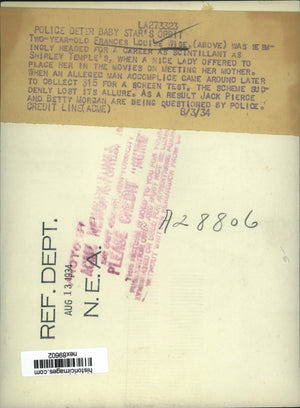 1934 Press Photo Frances Louise Wise Age 2 Wanted $15 From Mother To Make A Star