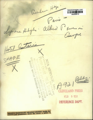 1951 Press Photo Shape's Temporary HQ at Hotel Astoria in Paris