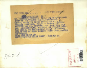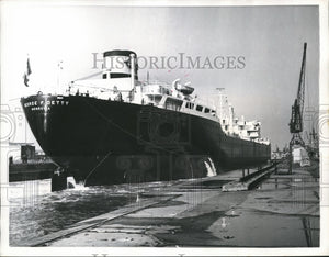 1957 Press Photo St Nazaire Shipyard France Tanker George F Getty Docked