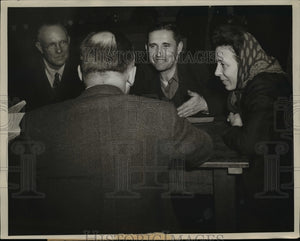 1949 Press Photo Ukrainian Relief Committee Discuss Living & Working Conditions