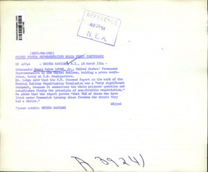 1954 Press Photo Ambassador to UN Henry Cabot Lodge Jr Holds Press Conference