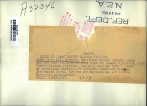 1935 Press Photo Queen of Cherry Blossom Festival Mary Bell Bennett