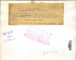 1941 Press Photo RG Menzies Australian Premier Visits Munitions Factory England